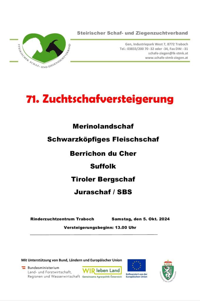 Am Samstag den 5 Oktober 2024 waren wir mit unserem Zuchtwidder Sven in Traboch bei der Herbstversteigerung vertreten.